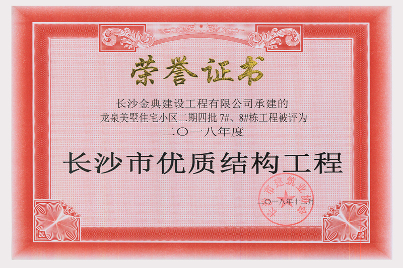龍泉美墅項目二期四批7、8#棟榮獲“長沙市優(yōu)質結構工程”獎