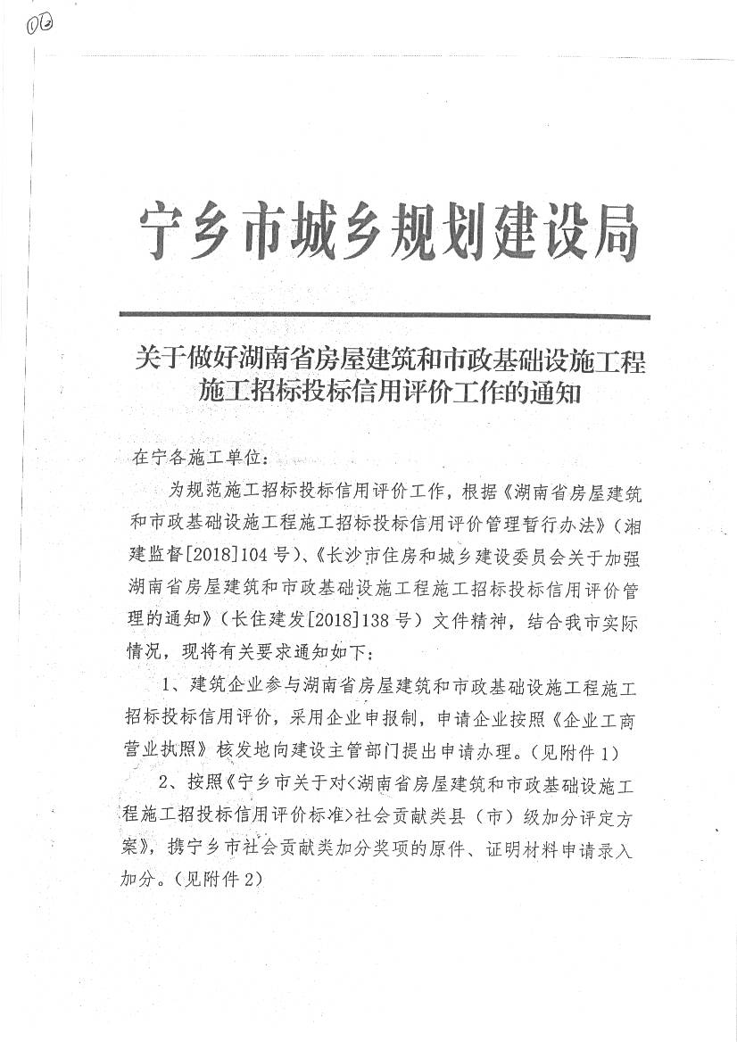 關于做好湖南省房屋建筑和市政基礎設施工程施工招標投標信用評價工作的通知